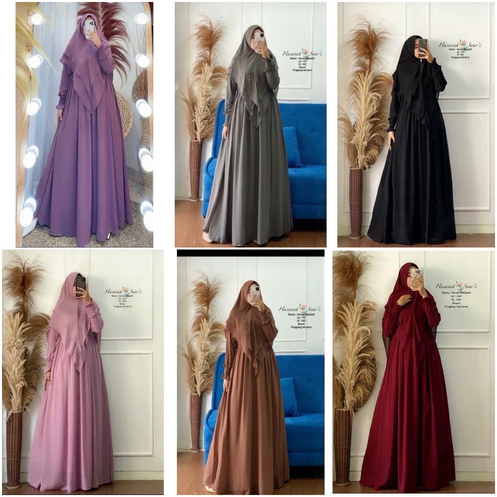 Hasanha Syar'i/ gamis syari wanita/ gamis syar'i bahan ceruty/ syari mewah/ syari mewah terbaru 2022 lebaran/ syari/ syari set/ syar'i/ syari ceruty/ syar'i mewah