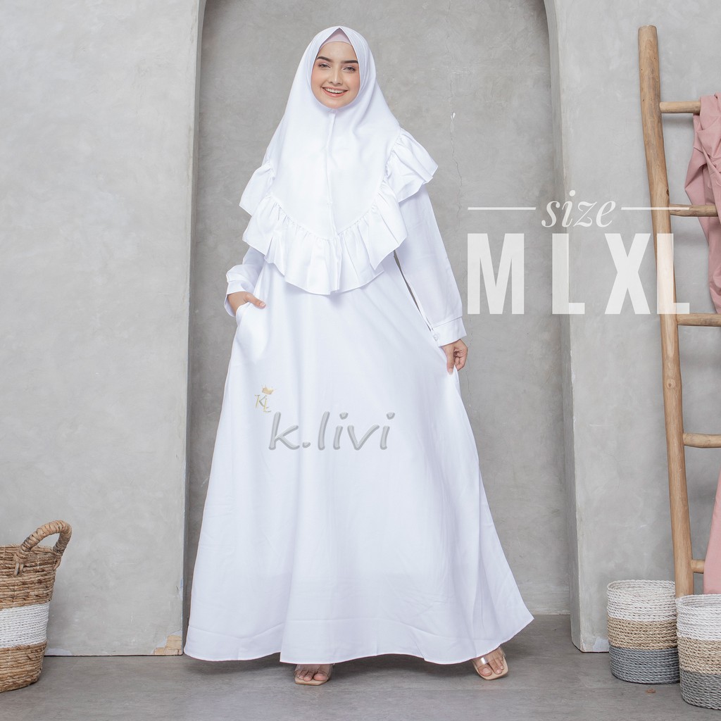 Baju gamis putih syari M L XL pengajian manasik busana muslim wanita