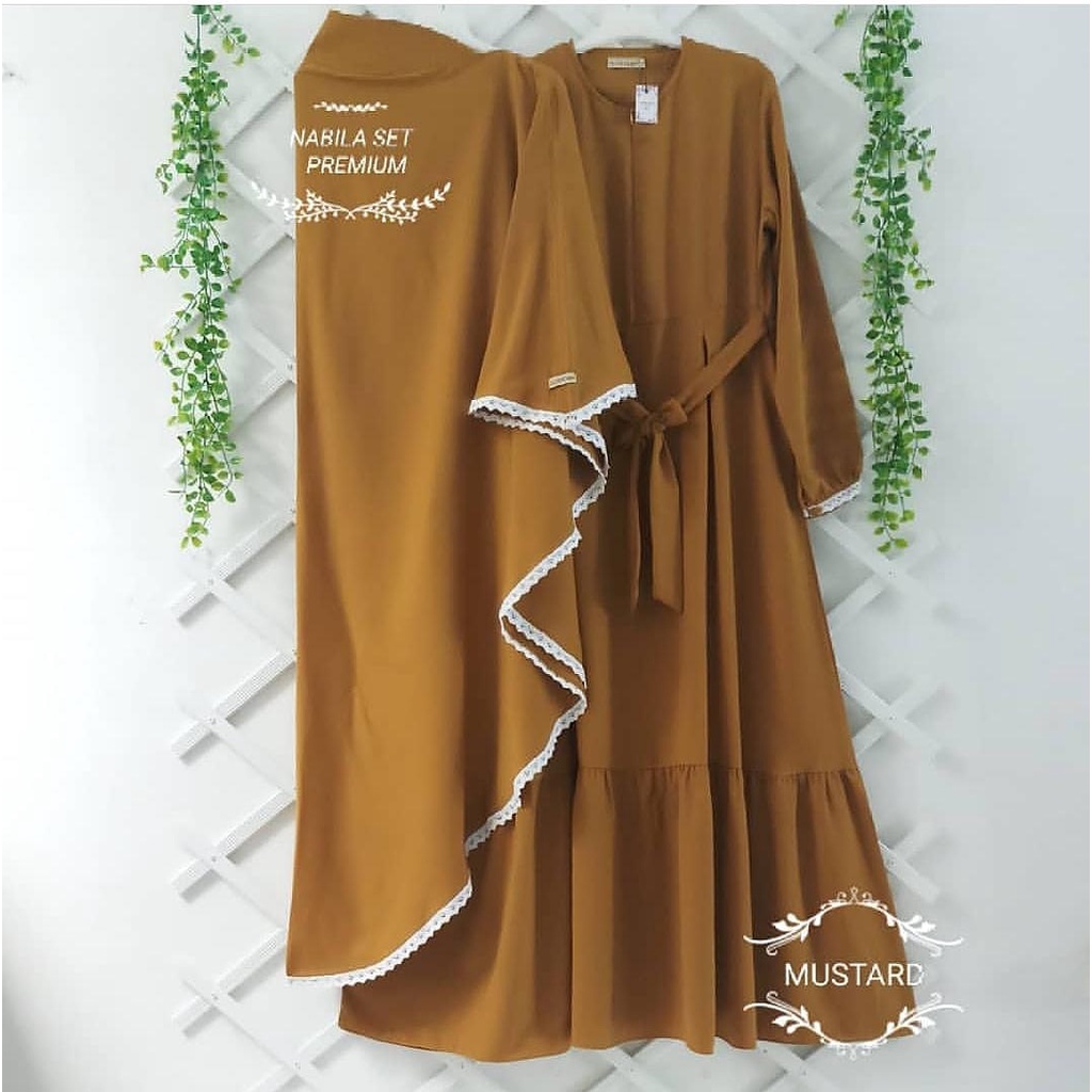 PROMO TERMURAH - Nabila Syari Gamis Set Khimar Muslim Wanita Crepe Aksen Renda Premium