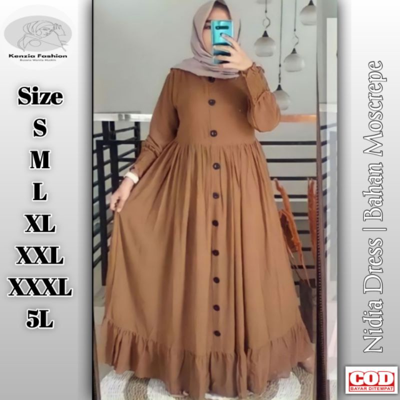 NIDIA | S M L XL XXL XXXL 5L | Dress Baju Gamis Wanita Polos Kancing Depan Jumbo